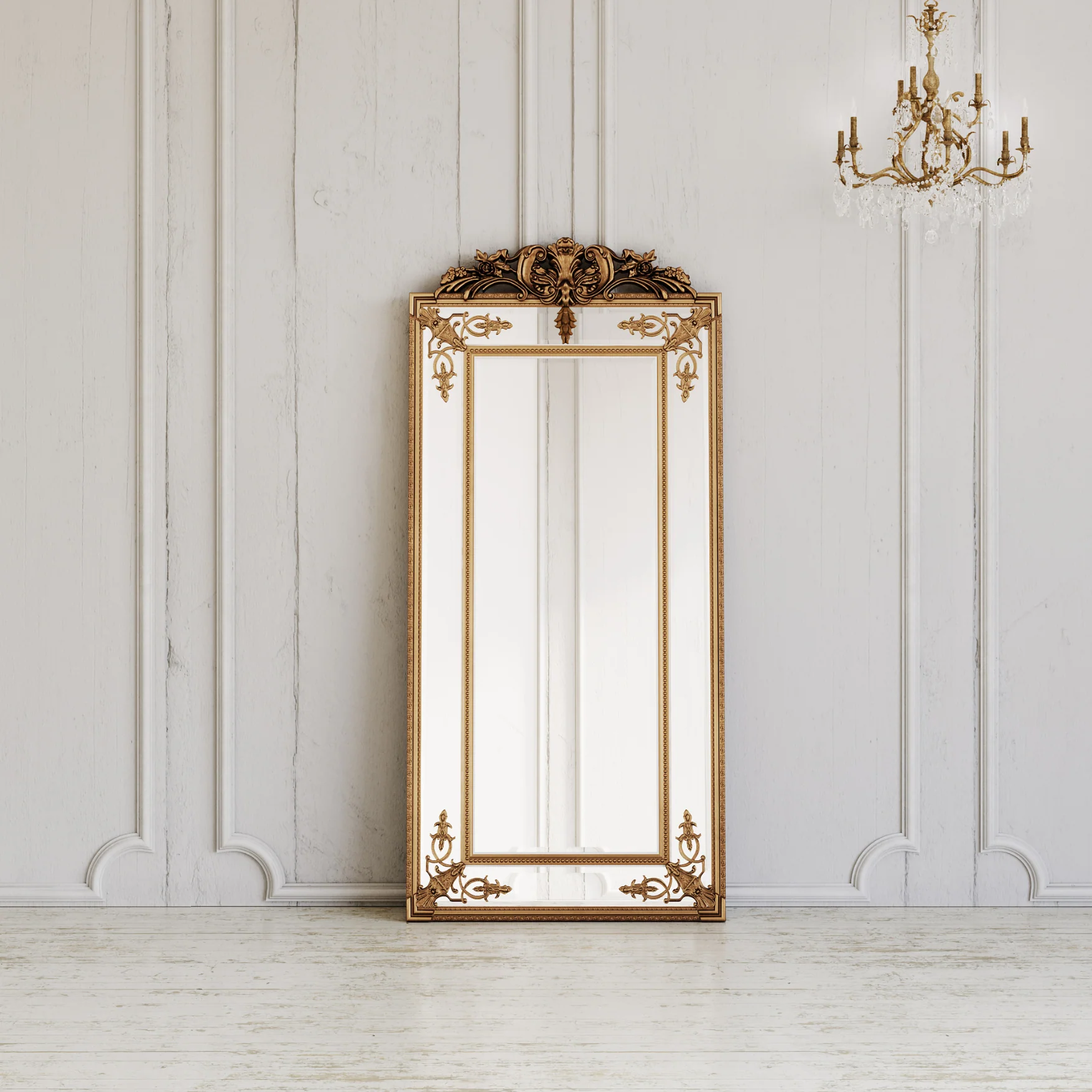 Fleury Mirror: French Gilt Gold Floor Mirror with Intricate Carvings